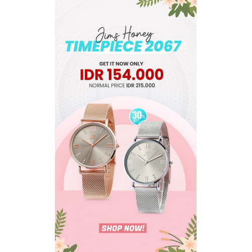 Introducing Jims Honey Timepiece 8156Jam tangan stylish dengan strap stainless steel. Tampilan muka ..