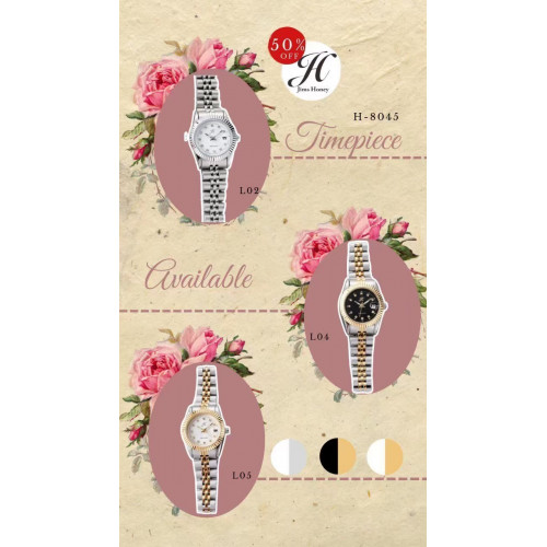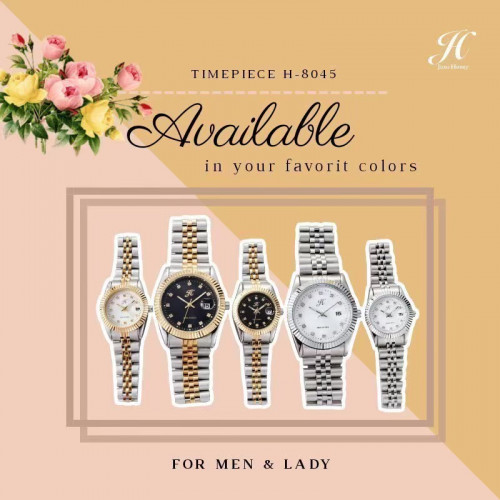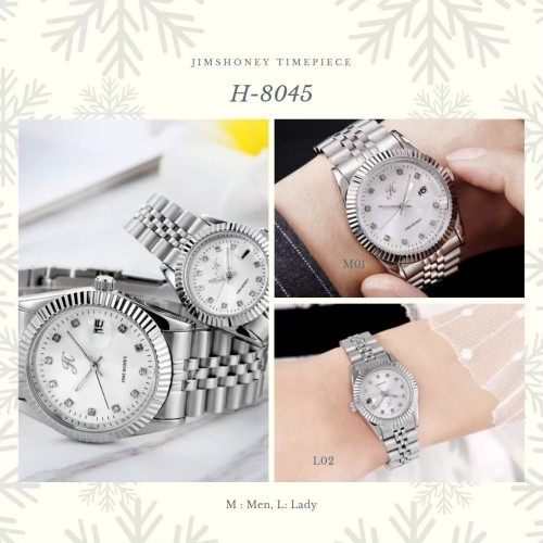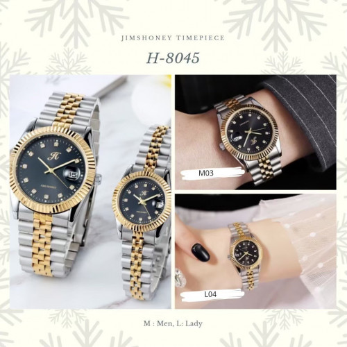 JIMS HONEY TIMEPIECE 8045 Jam tangan dengan strap stainless steel bergaya ala jam eropa. Dengan kilauan crystal pada permukaan jam dan ornamen bergerigi pada sekeliling muka dan pergelangan jam, memberikan kesan mewah pada jam tangan Jims Honey 8045 Berbahan Alloy yang terbaik dikelasnya serta bottom cover stainless steel yang anti karat ditambah dengan waterproof up to 30m membuat JIMS HONEY TIME PIECE 8045 menjadi jam tangan yang tangguh dan siap menemani aktivitasmu material mineral glass pada kaca yang dimana merupakan salah satu jenis kristal yang dibuat dari mineral penyusun kaca yang lebih tahan dengan benturan Available for couple, male and female Go get yours now! :)