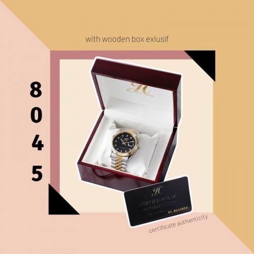 #iCarryJH #JHTimepiece #JH8045 #Jimshoney #Jamtangan #Jamtanganjimshoney WATCH INFORMATION : Brand : Jims Honey Case material : Alloy Band material : Alloy glass : mineral glass Bottom cover material : 304 stainless steel Berat : Kode M : 320 gr ( include Box ) Kode L :270 gr ( include Box ) 1 kg muat 3 pcs agar tidak kena volume Box : Wooden Box Diameter : 25 mm Water proof : 3 ATM / 30 M ( water resistant 3 ATM atau 30M, artinya jam anda hanya mampu tahan terhadap percikan air / hujan tidak disarankan melakukan kegiatan snorkeling, berenang, atau bahkan diving ) Packingan pengiriman dengan bubble packing untuk membantu customer tercinta kami menerima barang tanpa ada kerusakan pengiriman ;) DESIGN : JAPAN QUARTZ ANALOG MOVEMENT